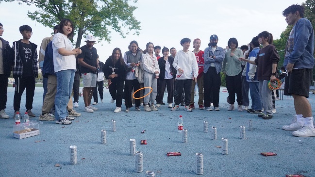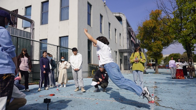 为在疫情防控期间减少人员聚集,运动会尽量多的设置了单人项目,共一分钟计时跳绳、足球点球、跳远、投篮、套圈五项,设置群体接力项目一项,为转转甜甜圈。比赛项目丰富多彩,保证了对抗性的同时又兼具趣味性,其中转转甜甜圈为用杯子接乒乓球、甩水瓶、咬甜甜圈三种趣味运动的接力,用时最短的选手获胜。套圈比赛最后进行,每位同学都可参与,保证学院为本次运动会准备的丰富物资都可物尽其用,成为同学们的战利品。