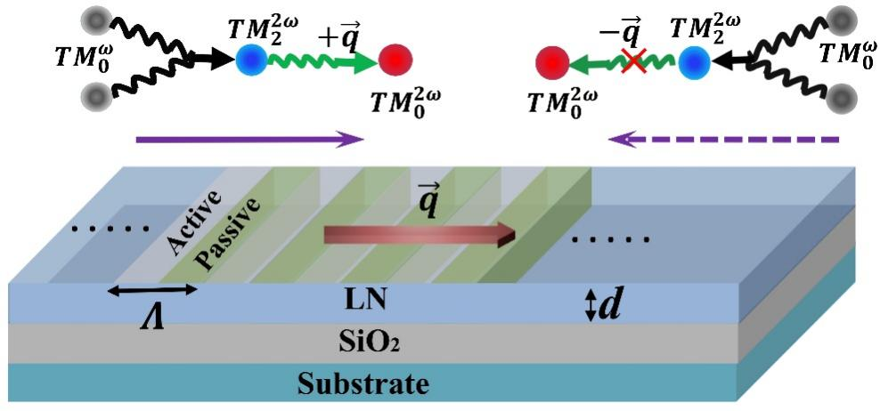 PT系统中实现非对称的非线性模式转换 Frontiers of Physics 17(5), 52504 (2022)