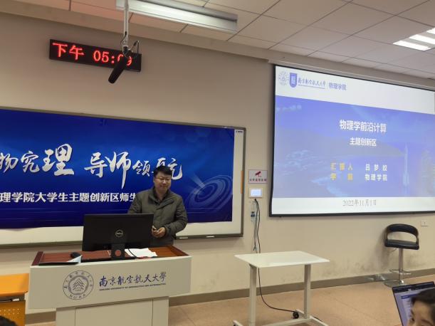 卢俊峰介绍了必威betway西汉姆大学生主题创新区的建设情况、创新区对本科生创新实践能力培养的支撑,鼓励学生积极了解、投身科研科创,提升素质能力。九大主题创新区包括“物理科学与应用”、“紫外日盲探测”、“空天智能材料与器件”、“物理实验演示与探究”等。每个创新区老师代表分别介绍了创新区的基本情况、主要研究方向以及所在领域的前沿发展、实验室设备条件、人才培养模式以及可供本科生选择的科创项目。李伟伟老师介绍了跟航空学院合作研究的空天智能材料与器件课题;姜明明老师介绍了紫外探测器在军事与日常生活中的应用;王吉明老师介绍了创新区承担的物理学术竞赛与物理实验竞赛的指导;董大兴老师围绕各种物理感知元件介绍了传感器技术与应用;潘琦老师介绍了创新区正在研究开发的多种物理演示实验;伏洋洋老师介绍了创新区自主搭建的“声学结构功能材料实验室”;吕梦蛟老师介绍了超原子核第一性原理的计算研究;罗强老师介绍了量子物理领域的前沿研究。同学们了解到了大学学习的广泛性,更深刻的理解了自主学习的重要性,对今后的学习科研有了更加清晰的规划,增强了基础学科学习的信心。