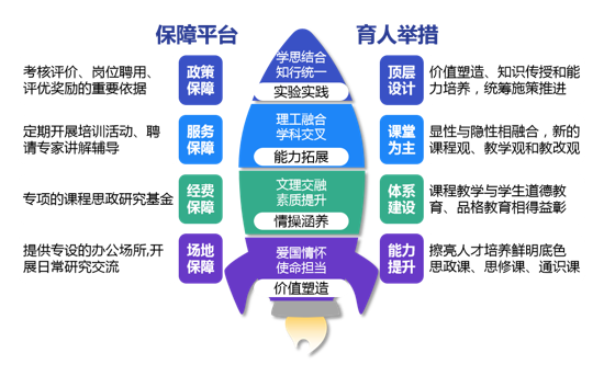 教育教学水平自评自建。学院秉持“学为中心、追求卓越、持续改进”的教学质量保障理念,着力推进“思政引领、三航特色”的课程体系建设。一方面,学院以课程负责人为核心,全面加强大学物理及实验课程的建设和教学团队的建设。依托“文科类大学物理虚拟教研室”“明理论教”等教学交流平台,以教学比赛为引擎,磨砺教师的教学能力,积极组织教学研讨,推进各级各类教改项目的研究,提升课堂教学质量,为培养新工科、新文科人才提供有力支持。另一方面,学院以专业负责人为核心,依托“国家级一流本科专业建设点”“江苏省基础学科拔尖人才培养基地”,结合“1+4启明导师”、科普育人、主题创新区建设等举措,系统推进应用物理学专业“三融三力”的拔尖创新人才培养体系建设。学院先后出台《本科生启明导师制实施办法》《公共基础课程负责人聘任及管理办法(试行)》《本科专业负责人聘任及管理办法(试行)》《创新实践项目管理办法(试行)》《本科生班级导师管理办法》《本科教学经费管理办法(试行)》《专业建设指导委员会工作职责》《教学团队建设与管理办法(试行)》等系列管理制度,持续完善构建本科教育教学管理体系。