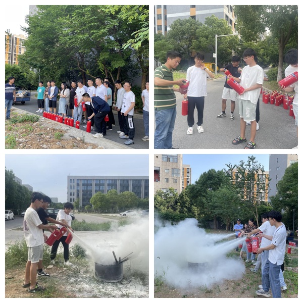 第二部分是实战演练环节,包括灭火器的使用及现场模拟扑灭火源等内容。在专业教官的指导下,师生们亲身体验了灭火器的正确使用方法,并进行了模拟火源的扑灭演练,不仅掌握了灭火器的使用技巧,还增强了面对突发火灾时的应急处理能力。