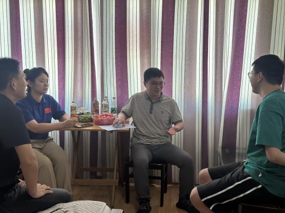 研究生辅导员梁欢在江苏南京开展家访工作,与学生家长分析用人单位对毕业生的学历层次需求、物理基础学科特性等因素,为解决学生就业提供充分指导与帮助。