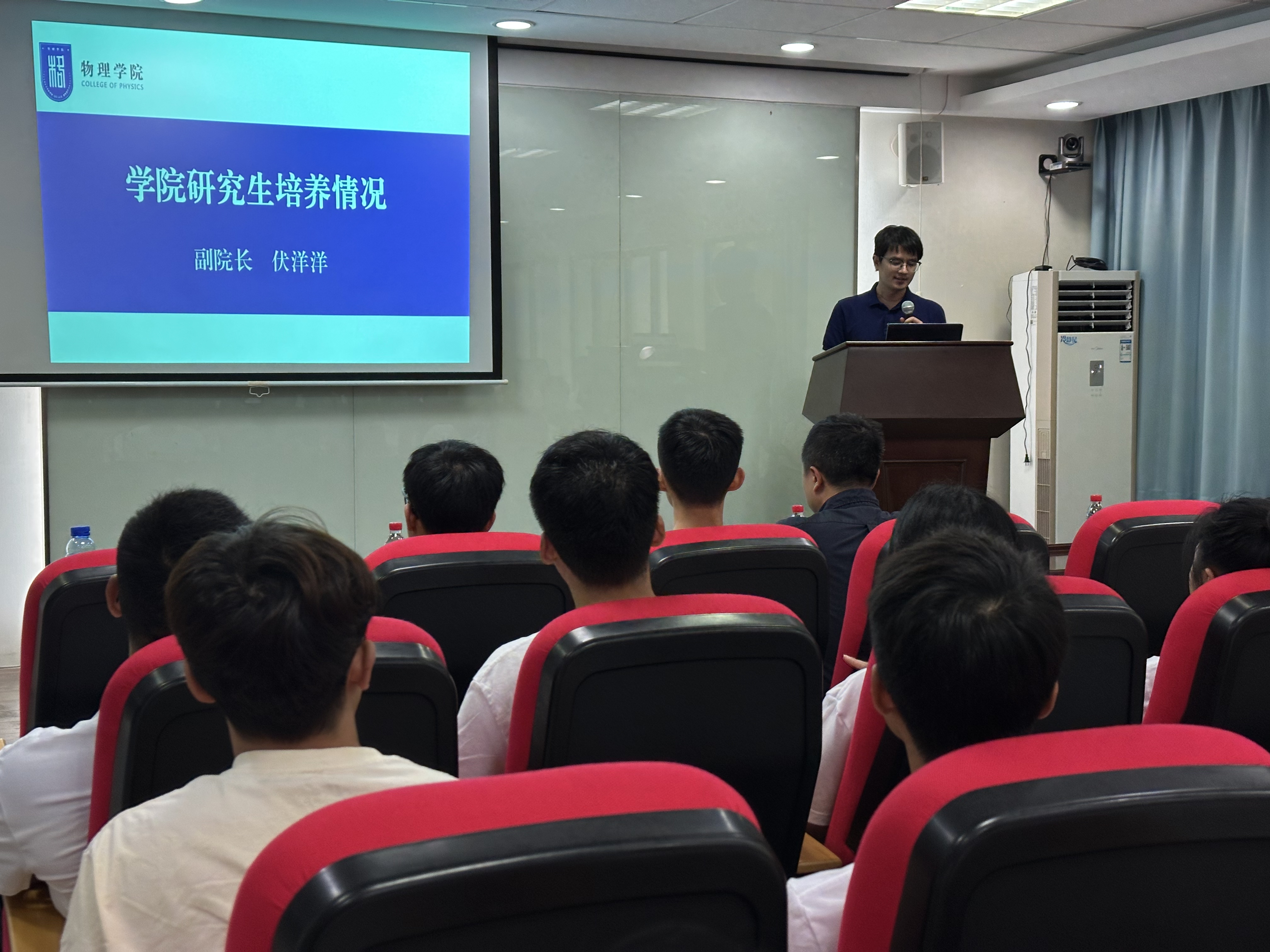 副院长伏洋洋向学院90名研究生新生表达了祝贺和欢迎,希望同学们尽快适应研究生阶段学习,首先要学会自主研究、独立思考,结合自身情况制定个性化研究计划,建立 “学术目标确立-科研进度管控-问题及时沟通”的闭环学习模式,保障学业高效推进;其次要夯实基础理论知识,积极参与学术论坛、前沿课题研讨等学术实践活动,重点锻炼科研思维与实验设计能力;最后注重劳逸结合,为更好地开展科研工作筑牢坚实基础。