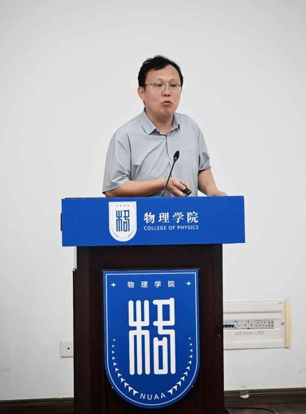 陈金宝传达了姜斌校长在第八届教职工代表大会第五次会议暨2025年下半年学校干部教师大会上的报告精神,结合学校发展蓝图,深入解读了学校在高质量党建、学科建设、人才引育、教学改革、科研创新等方面的整体部署。同时,他全面总结学院上半年工作成效,对标省内外强校精准剖析学院发展现状与短板,并系统部署十年规划实施方案:一是以基础教学为“主阵地”,推动教育质量从“教学大院”向“教学强院”跨越;二是以基础研究为“创新源”,聚焦支撑航空、航天领域原始创新突破;三是以交叉学科为“连接器”,深度贯通材料、控制、信息、动力等关联学科生态;四是以拔尖人才为“孵化器”,重点培育“物理+空天”复合型人才,为学校“双一流”建设与国家战略需求筑牢人才与创新根基。