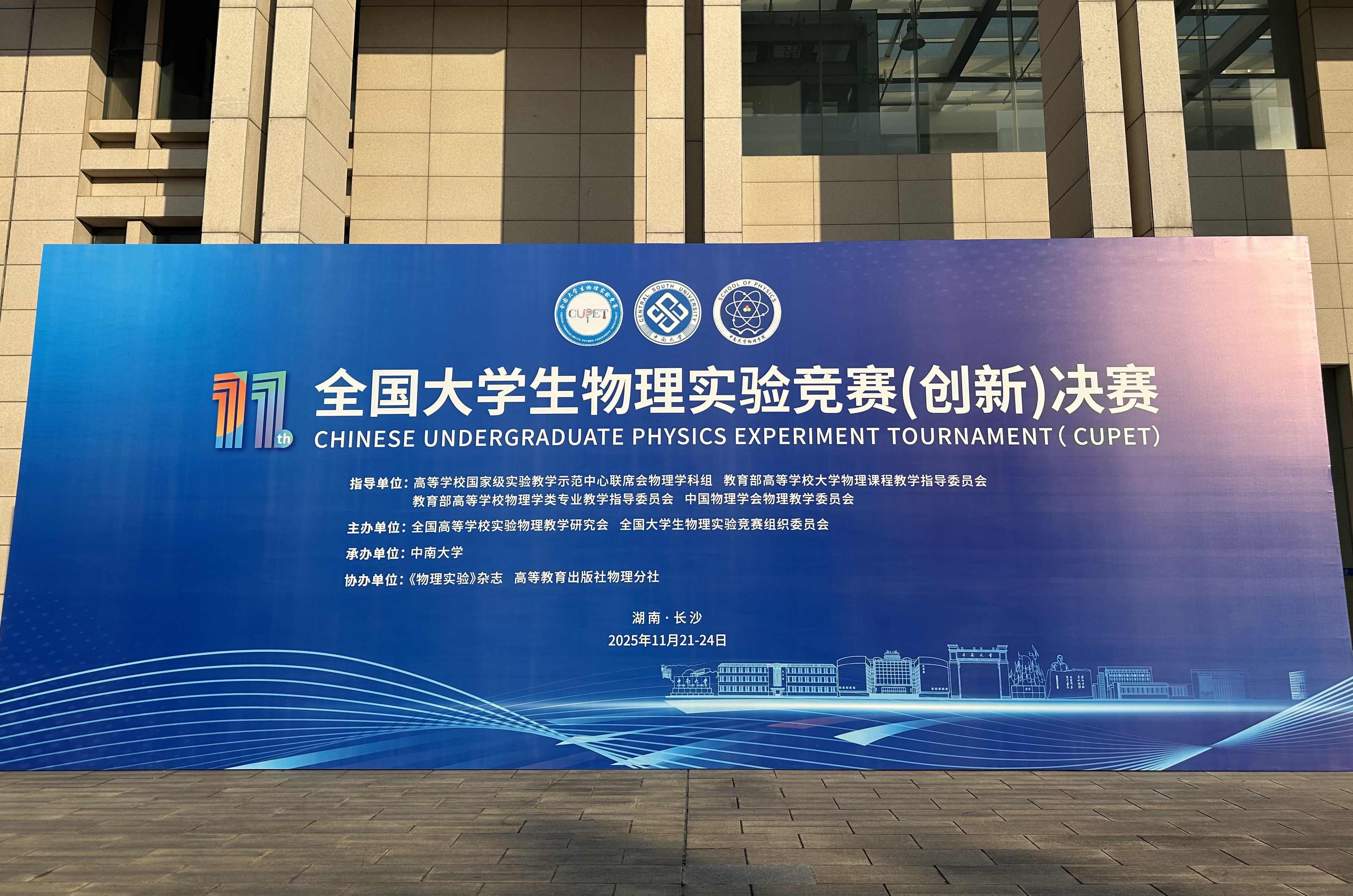 11月21日-23日,第十一届全国大学生物理实验竞赛(创新)决赛在中南大学举行,本届大赛共有722所高校,3260项参赛作品参加预赛。经过预赛选拔,共有331所高校、750支队伍脱颖而出,共计2000余名师生进入到现场决赛环节,评选出命题类、自选类、讲课类(含校企合作)作品的一等奖、二等奖、三等奖和优秀奖,以及本届赛事的优秀组织奖。