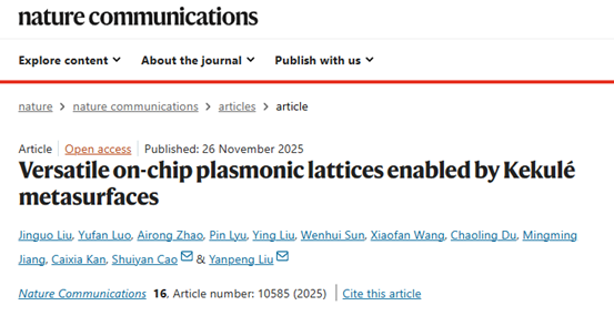 必威betway西汉姆光电功能材料器件与物理研究团队曹水艳副研究员与国际前沿betway院刘衍朋教授合作,研究了一种多功能Kekulé超表面平台与基于此系列超表面结构的多自由度可控SPP晶格,实现了表面等离子体激元在二维极限下的晶格类型、空间分布及位点相对强度的可控参数调控;构建了片上可重构的面内/面外光源阵列,并进一步证明了的SPP晶格作为图像加密/解密的技术应用。相关成果以“基于Kekulé超表面的多功能片上等离激元晶格(Versatile on-chip plasmonic lattices enabled by Kekulé metasurfaces)”为题在线发表于《Nature Communications》。必威betway西汉姆22级电子信息专业硕士生刘金果、罗宇凡及聊城大学赵爱荣博士为论文共同第一作者,曹水艳副研究员和国际前沿betway院刘衍朋教授为共同通讯作者。光电功能材料器件与物理研究团队阚彩侠教授、姜明明教授、杜朝玲副教授也参与了该工作的研究。