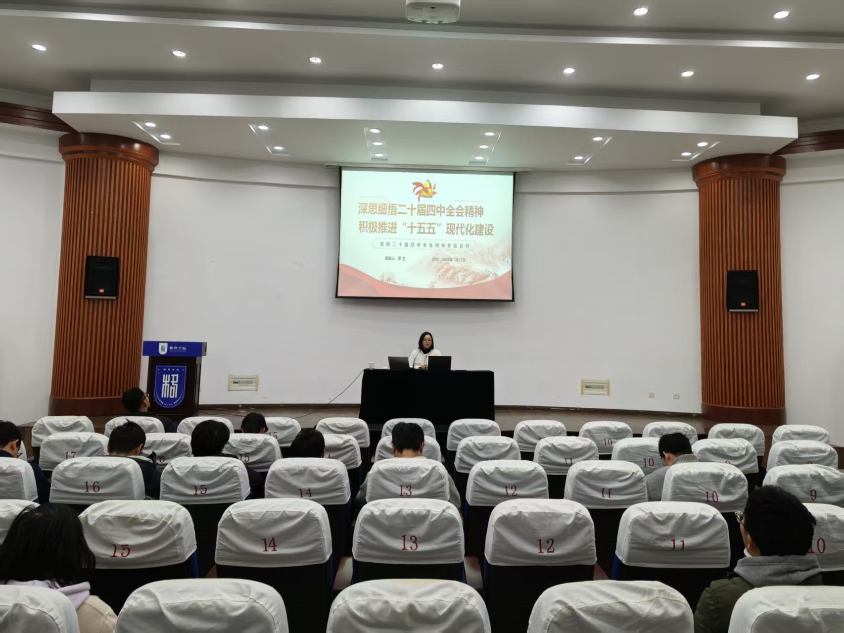 报告会邀请校内宣讲团成员马克思主义学院讲师罗兰作专题宣讲。罗兰以《深思细悟二十届四中全会精神,积极推进“十五五”现代化建设》为题,从历史逻辑、深层逻辑和实践逻辑的角度阐述了二十届四中全会的核心内涵、战略意义以及“十四五”期间的历史性成就与实践底气,并结合主流媒体的权威报道,系统解读了二十届四中全会擘画的国家发展的清晰路径和宏伟蓝图。她提出,我们要在全会精神的指引下,紧密团结在以习近平同志为核心的党中央周围,坚定信心,奋勇前行,为基本实现社会主义现代化而努力奋斗,不断开创中国式现代化建设的新局面。